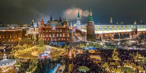 ومثلا في موسكو يمكنك التوجه إلى الساحة الحمراء لتجربة احتفالات العام الجديد الأكثر شعبية ولكن يمكنك بسهولة تجنب سحق الناس في الساحة من خلال حضور حفل خاص يقدم الطعام الروسي التقليدي.