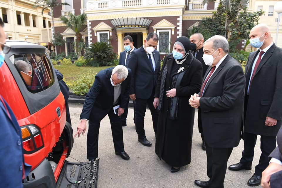 تفقد المهندس محمد أحمد مرسي وزير الدولة للإنتاج الحربي والسيدة نيفين جامع وزيرة التجارة والصناعة نموذجاً لمركبة خفيفة ذات أربع عجلات، وجاء ذلك بديوان عام وزارة الإنتاج الحربي.