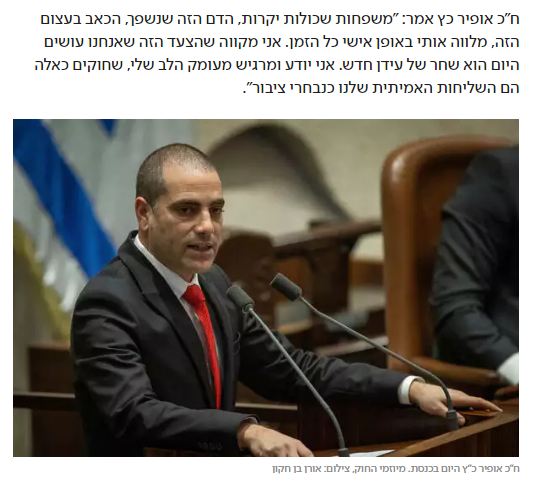 وزير الأمن القومي إيتمار بن غفير: أرحب بالقانون المهم الذي أصدرناه في الكنيست لحرمان إرهابي من الجنسية. أعداؤنا لا يستحقون جنسيتنا ومن يأتون لإيذاء دولة إسرائيل لا يستحقون العيش هنا . خطوة مهمة في مكافحة الإرهاب من قائمة الخطوات المهمة التي أطالب بها ، أولا وقبل كل شيء قانون عقوبة الإعدام للإرهابيين ".