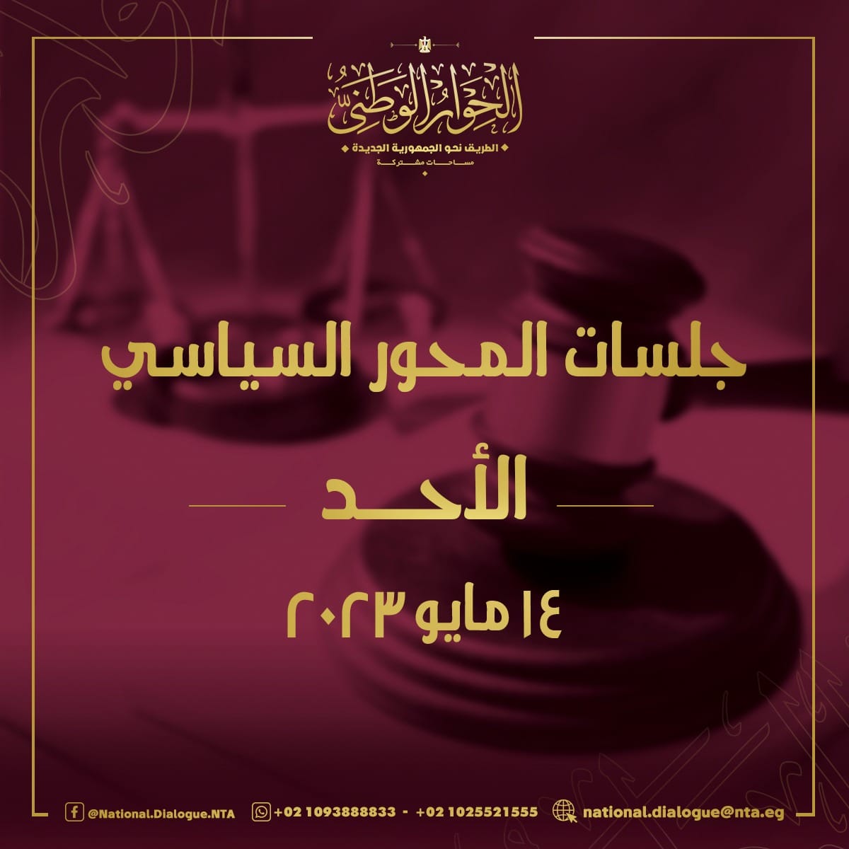 تنطلق غداً الأحد ١٤ مايو ٢٠٢٣ أولى جلسات المحور السياسي للحوار الوطني بمناقشة بعض القضايا التي تهم المواطنين.