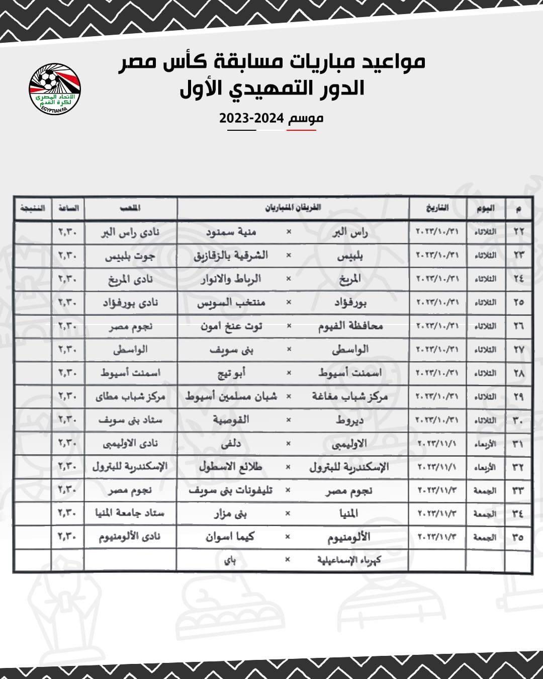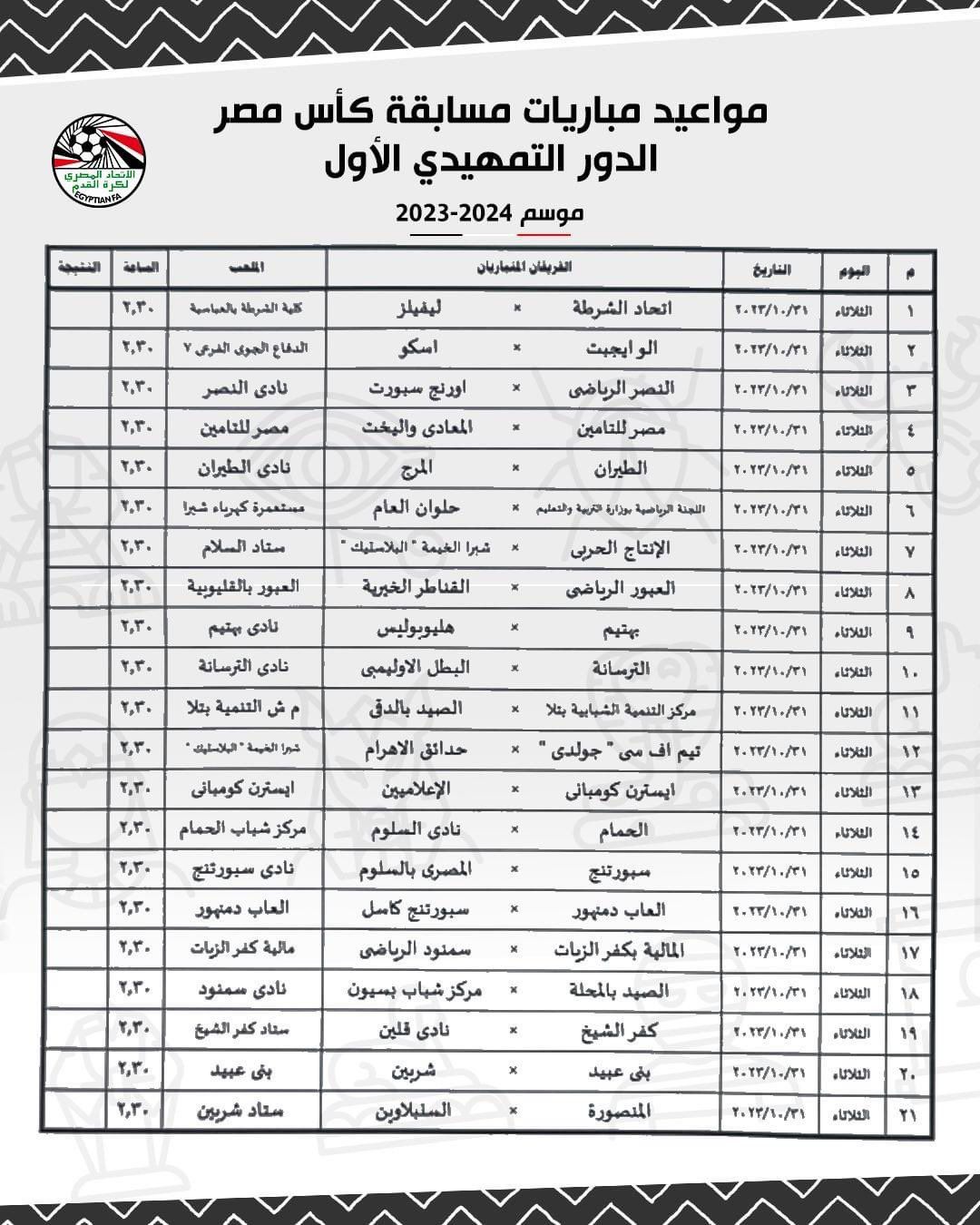 مواجهات الدور التمهيدي لبطولة كأس مصر: