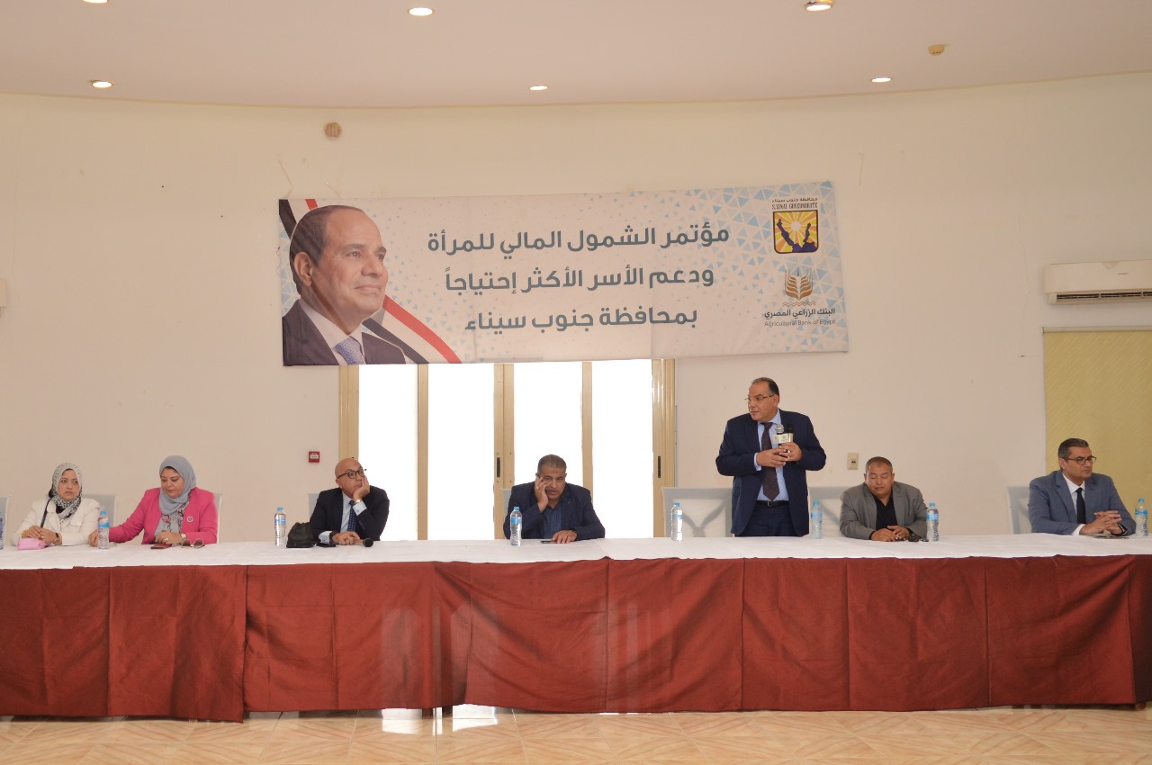 وأوضح رئيس البنك الزراعي المصري، أن تمكين المرأة السيناوية يأتي في مقدمة اهتمامات البنك نظرا لطبيعة المحافظة وتركيبتها السكانية، وذلك من خلال اتاحة برنامج التمويل متناهي الصغر "باب رزق"،بالتعاون مع أجهزة المحافظة والمجلس القومي للمرأة والجمعيات الأهلية، لتحقيق أقصى استفادة من البرنامج في تمويل مشروعات المرأة والصناعات اليدوية والحرف التقليدية التي تشتهر بها المحافظة، موضحاً أن البنك ينظم مؤتمرات للشمول المالي لتعزيز الوعي المالي لدى المرأة وتوعيتها بأهمية الأنشطة الانتاجية متناهية الصغر في تحسين مستوى معيشتها وزيادة دخل أسرتها، فضلا عن تخصيص فرق عمل تجوب القرى والتجمعات البدوية في كافة أنحاء محافظة جنوب سيناء للتواصل مع النساء وتشجيعهن على الحصول على التمويل المناسب لاطلاق مشروعاتهن لتحفيزهن على العمل والانتاج لتحقيق الأرباح وتحسين دخل أسرهن.