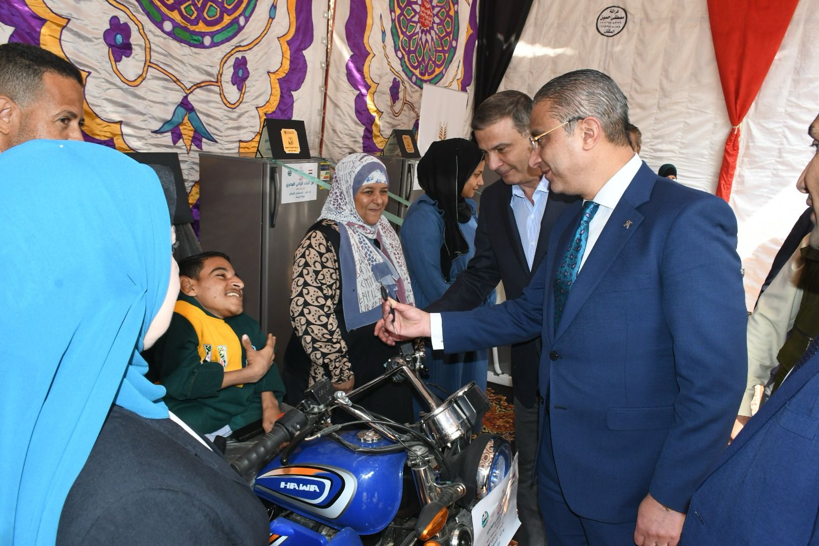 كما تم تسليم أجهزة كهربائية عبارة عن ثلاجة وغسالة وبوتاجاز لعدد 50 عروسة من الفتيات غير القادرات المقبلات على الزواج، وموتوسيكل مجهز لشخص من ذوي الإعاقة لتيسير حركته، وذلك ضمن مبادرة "إيد بإيد" التي ينفذها البنك الزراعي المصري، في إطار الدور المجتمعى الذي يقوم به، لدعم الشباب والمرأة بالقرى الأكثر إحتياجاً، ضمن فعاليات المبادرة الرئاسية "حياة كريمة".