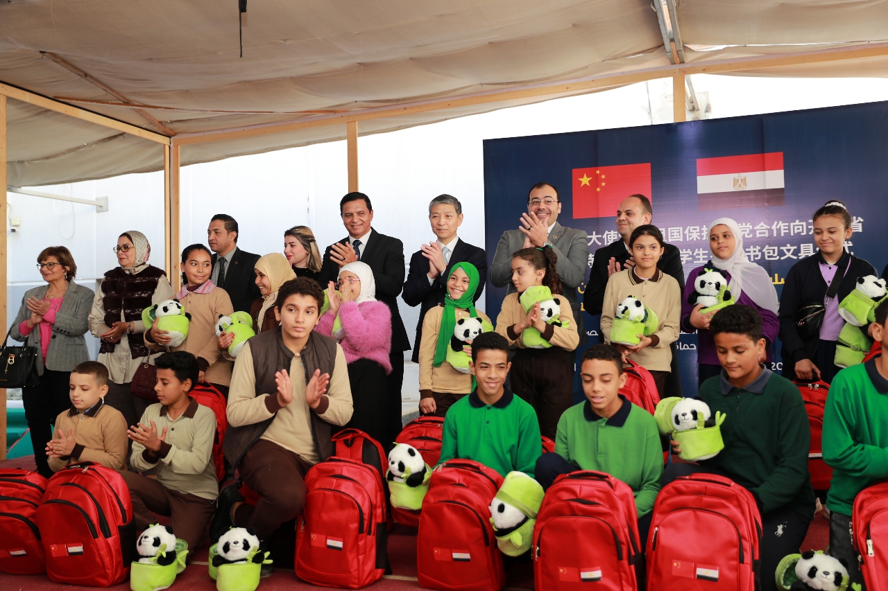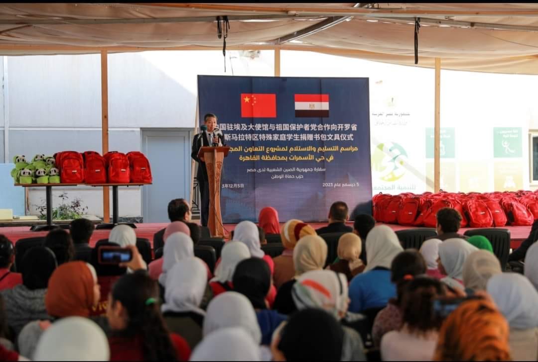 "الأطفال هم زهور الوطن وأمل الأمة ومستقبل البلاد. آمل أن تساعد الأدوات المدرسية التي أعدتها السفارة الصينية للأطفال على تحقيق حلمهم في يوم مبكر حتى يصبحوا ركائز مصر.