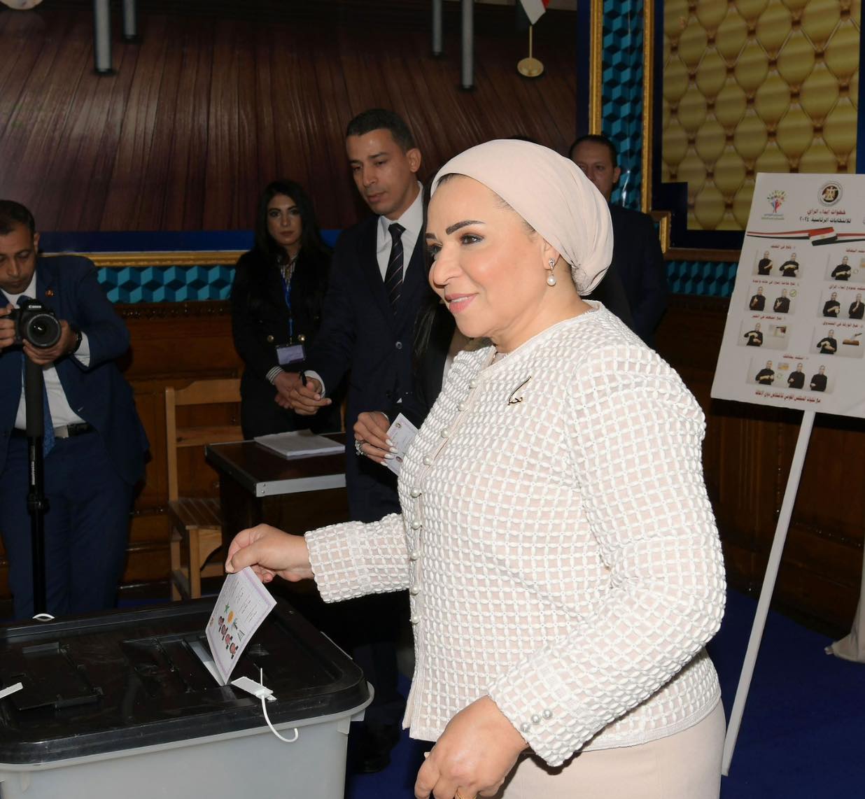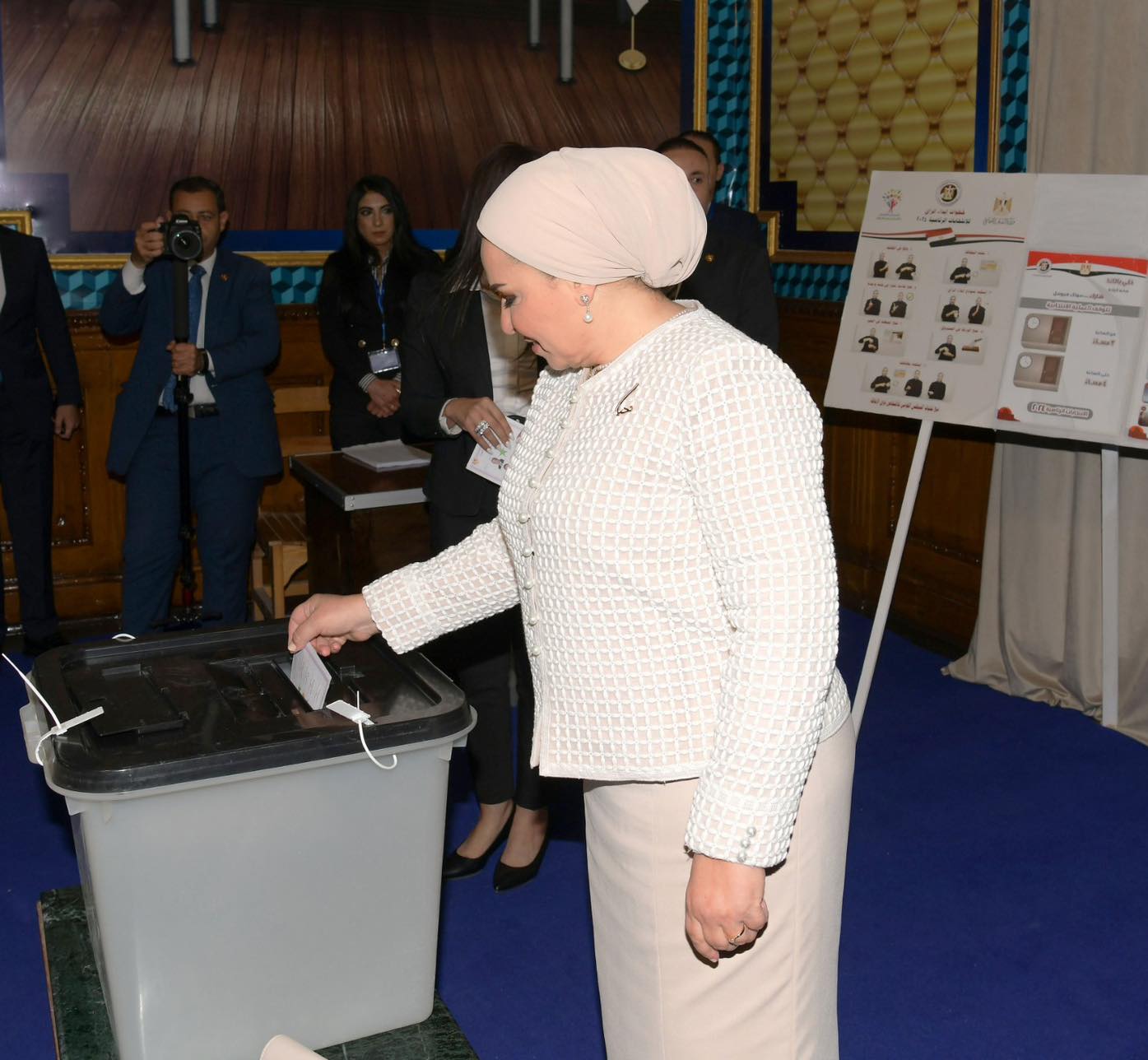 السيدة انتصار السيسي ونجلتها تشاركان في التصويت في الانتخابات الرئاسية