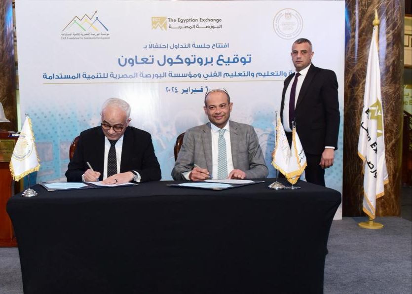 وقع الدكتور رضا حجازي وزير التربية والتعليم والتعليم الفني، وأحمد الشيخ - رئيس مجلس أمناء مؤسسة البورصة المصرية للتنمية المستدامة (ذراع البورصة المصرية المجتمعي) اليوم، بروتوكول تعاون مشترك بشأن تقديم الدعم التكنولوجي اللازم لمدارس وفصول التربية الخاصة وتجديد الورش.