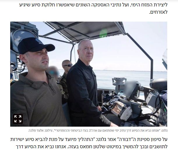 - جالانت قبيل إنشاء ميناء غزة في جولة بحرية :"سنحرص على وصول المساعدات لمستحقيها".