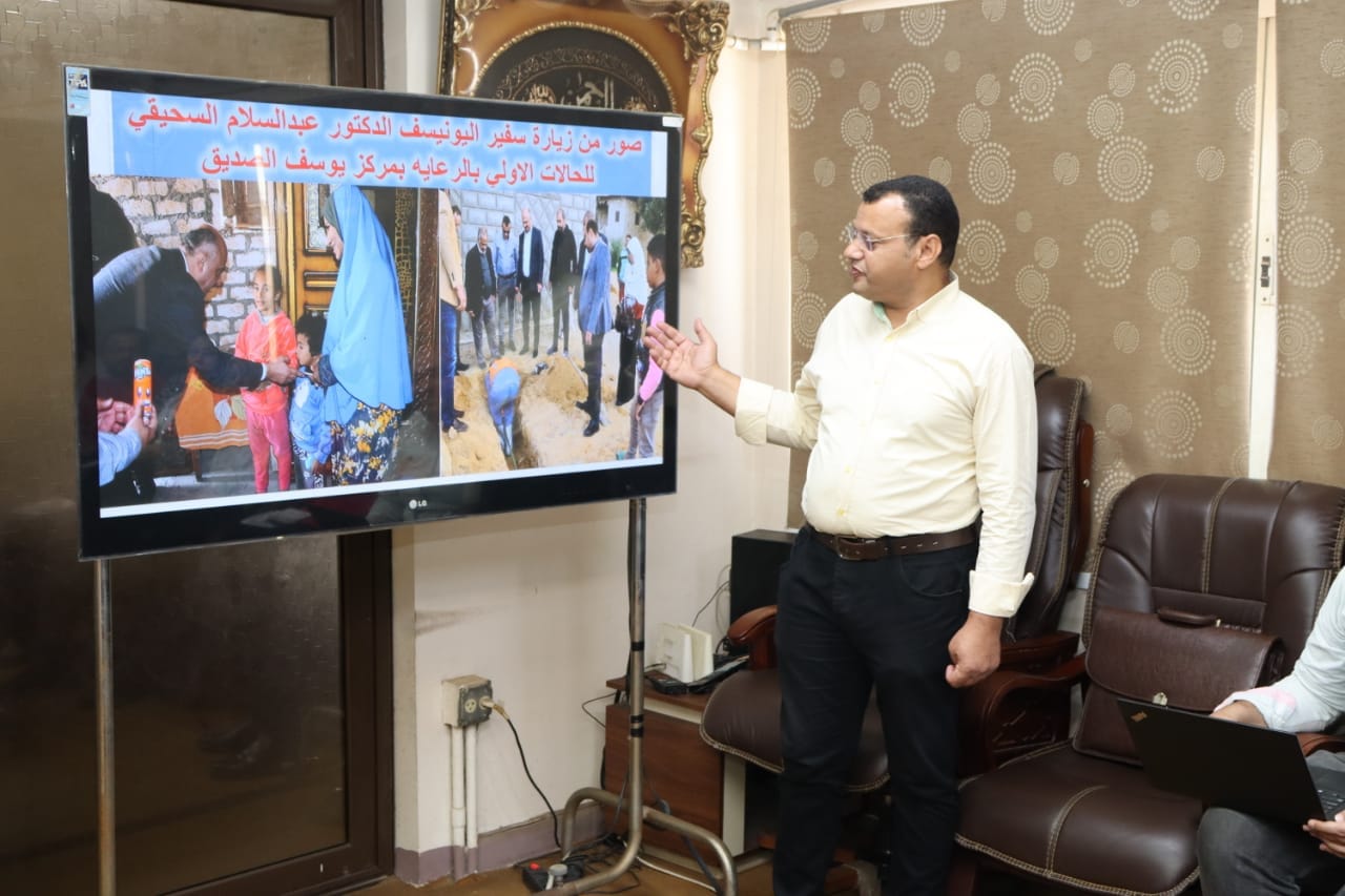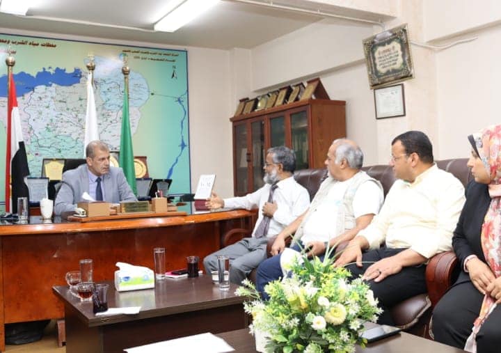 استقبل صباح اليوم المهندس محمد عبدالجليل النجار رئيس شركة مياه الشرب والصرف الصحى بالفيوم الدكتور فضل الحق نائب سفير منظمه الأمم المتحدة للطفولة يونيسف والدكتور مطريبجون بحر دى نوف مدير برنامج المياه والأصحاح البيئى بمنظمه اليونيسف والدكتور إيهاب جبريل مدير مساعد برنامج المياه والأصحاح البيئى والدكتور ريمون شكرى المسئول الميدانى بمنظمه اليونيسف لاستعراض وبحث سبل أوجه التعاون فى مجال نشر الوعى المائى وتوصيلات مياه الشرب للأسر الأولى بالرعاية عن طريق مشروع القرض الدوار وذلك بمحطه مياه الشرب بقحافة .