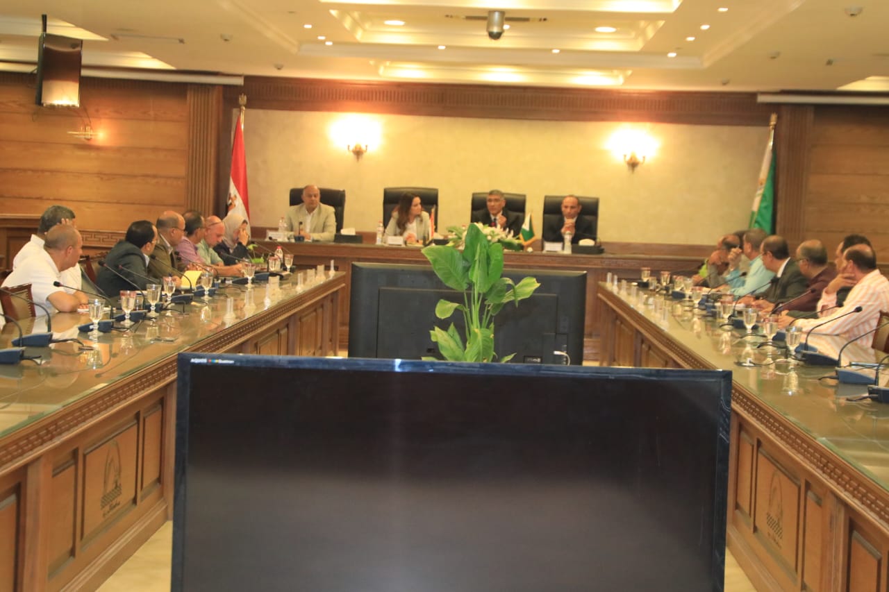 الاجتماع الذى ترأسه المحافظ بحضور هند عبد الحليم نائب المحافظ واللواء شاكر يونس السكرتير العام ومحمد نور السكرتير العام المساعد ومحمد عبد الحميد رئيس مدينة الجيزة .