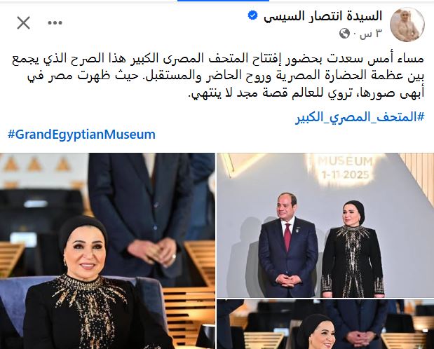 مساء أمس سعدت بحضور إفتتاح المتحف المصرى الكبير هذا الصرح الذي يجمع بين عظمة الحضارة المصرية وروح الحاضر والمستقبل. حيث ظهرت مصر في أبهى صورها، تروي للعالم قصة مجد لا ينتهي.