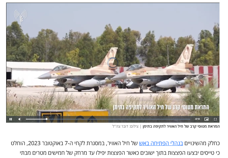 ومن الآن فصاعدًا، سيُطلب من كل طائرة مقاتلة في مهمة دفاع جوي الاستجابة أولًا وقبل كل شيء لسيناريوهات الدفاع عن الحدود البرية، مع إعطاء الأولوية القصوى للدفاع عن المستوطنات، ثم صدّ أي هجوم بري، والدفاع عن المواقع الأمامية، ومهاجمة طرق التسلل على طول الحدود. وقد قرر الجيش الإسرائيلي أن تقلع الطائرات مُجهزة بقنابل جو-أرض يتراوح وزنها بين عشرات الكيلوغرامات والأطنان.